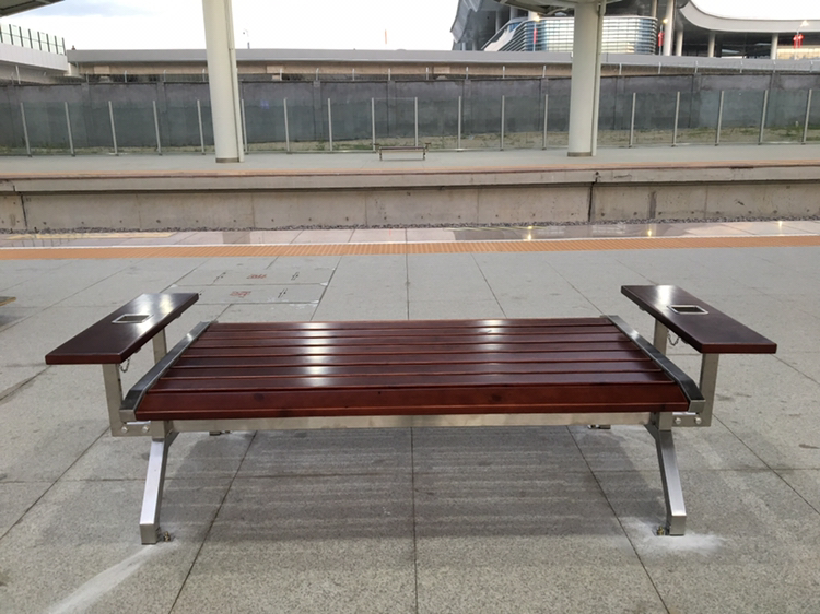 目前,青岛西站使用中的站台台面共有4个,在每个台面分别安装4套座椅,我们鑫金邦的同事用时2天将所有站台不锈钢椅子安装完成。这款座椅支架由防锈不锈钢支架制作而成,其他部位皆是木质材质,外观大气、上档次,左右手的带不锈钢烟灰缸的扶手更加体现了其人性化的设计。